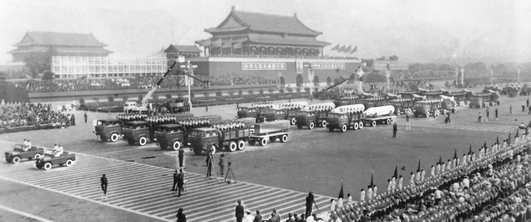 ▲1984年,在新中国成立35周年阅兵上,重庆所设计的军用汽车驶过广场